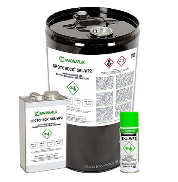 SPOTCHECK® SKL‑WP2 — водосмываемый пенетрант красного цвета для цветного капиллярного контроля. Предназначен для выявления поверхностных дефектов (трещин, пор, несплошностей) в металлических и неметаллических непористых материалах.